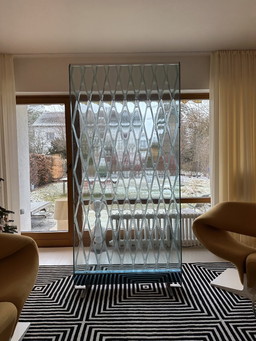Italiaanse tabletten uit plexiglas in Eisglas Optik met Messing-details