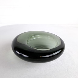 Vintage Brutalist design glazen schaal met leer decoratie Robert Kremsky 1990's