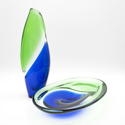 Erling Torvits groot blauw, roze en groen middelpunt in Muranoglas