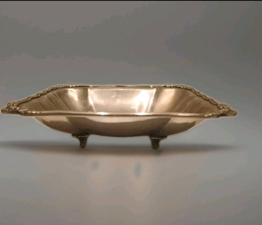 Verzilverde schaal op voet met rocaille handgrepen – historiserende stijl