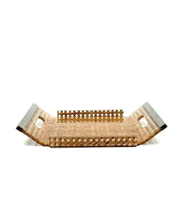 Hollywood regency dienblad van plexiglas en Weens stro / vide poche, Christian Dior Frankrijk ca. 1980Hollywood regency dienblad van plexiglas en Weens stro / vide poche, Christian Dior Frankrijk ca. 1980