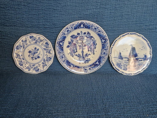 Drie decoratieve Delftsblauwe bordenDrie decoratieve Delftsblauwe borden