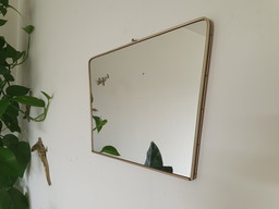Vintage prachtige spiegel met messing rand, jaren 60 Duitsland.