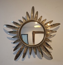 Chaty Vallauris zonnespiegel 86cm uit 1960. Bol glas 18,50cm.