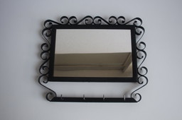 Vintage metalen wandspiegel met haken, jaren 1960.