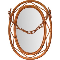 Vintage ovale spiegel in rotanVintage ovale spiegel in rotan