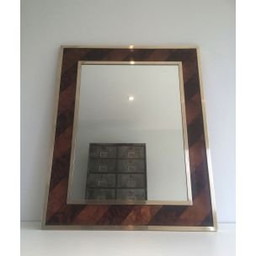 Vintage Franse spiegel van hout en messing, 1960Vintage Franse spiegel van hout en messing, 1960