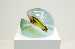 Zeldzame grote abstracte glazen sculptuur / tijdschriftenhouder van Toni Zuccheri voor Veart, 1970S Italië.