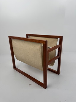 Deens tijdschriftenrek van teak en linnen van Henning Wind-Hansen voor Sika Møbler 1960.