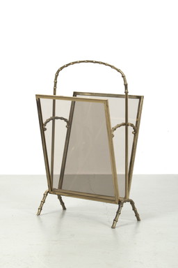 Vintage Tijdschriftenrek van Messing en Glas Maison Bagues