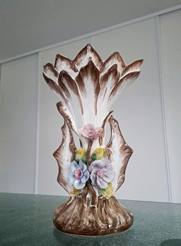 West-Duitse keramische vaas met bloemmotief, jaren 1960
