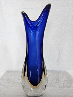 Blauwe vaas "Fazzoletto" van Dogi in Murano glas uit 1970. Gemaakt in Italië
