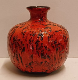 Vet Lavavase Vintage Nederlands Rood Glazuur, Handgemaakt, 50/60D, Kunst Aardewerk, Verzamelobject