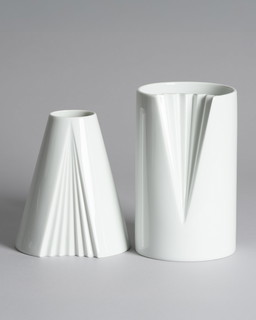 Architectonisch paren: Twee witte porseleinen vazen van Fürstenberg, West-Duitsland, jaren 1970