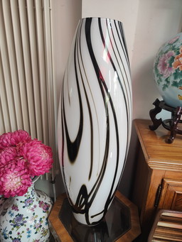 Zeldzame Kosta Boda vaas, zwart en wit, satijnen afwerking