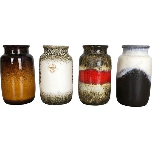 Set van 4 vintage vette lava keramieken vazen uit Scheurich, Duitsland 1970