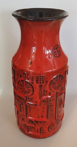 Rode vaas van Bodo Mans voor Bay Keramik, 1960