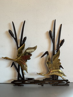 Vintage Chinoiserie zwart gelakt wandpaneel met parelmoer inleg