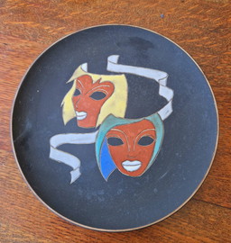 1 X Vintage Handgeschilderd Aardewerk Terra Cotta Russel Tiglo 1944 Sier Wandbord