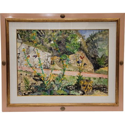 Vintage gouache “Chemin des Papillons” op papier, Italië 1970Vintage gouache “Chemin des Papillons” op papier, Italië 1970