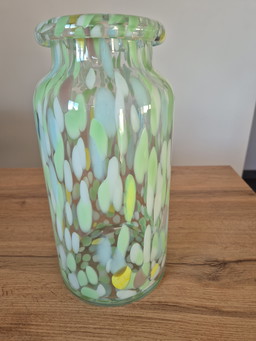 Scandinavisch design - Zwarte glazen vaas met geslepen stippenmotief