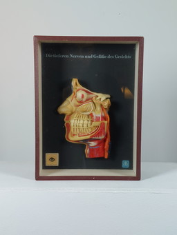 Medisch wasmodel, Hygiënemuseum Dresden, lesmodel, vitrine, gezichtszenuwenMedisch wasmodel, Hygiënemuseum Dresden, lesmodel, vitrine, gezichtszenuwen