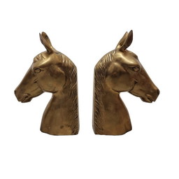 Mid Century messing boekensteunen paardenhoofden