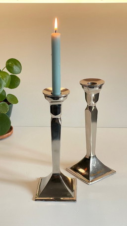 Paar vintage verchroomde kandelaars van gegoten aluminium