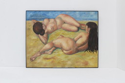 Groot vintage schilderij, olieverf op doek – Twee liggende figuren