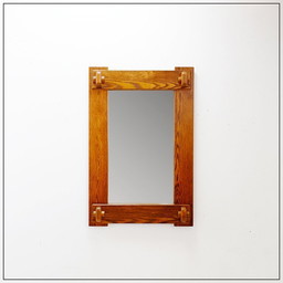 Brutalistische wandspiegel met massief houten frame - jaren 60Brutalistische wandspiegel met massief houten frame - jaren 60