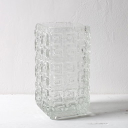 Vintage geperst glazen vaas van František Pečený / Czech Art Glass / 1972