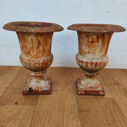 Gietijzeren tuinvazen, plantenbakken bloembakken. Set prijs