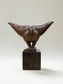 Modernistische bronzen sculptuur – Gestileerde vrouwelijke figuur in evenwicht – Gesigneerd Milo