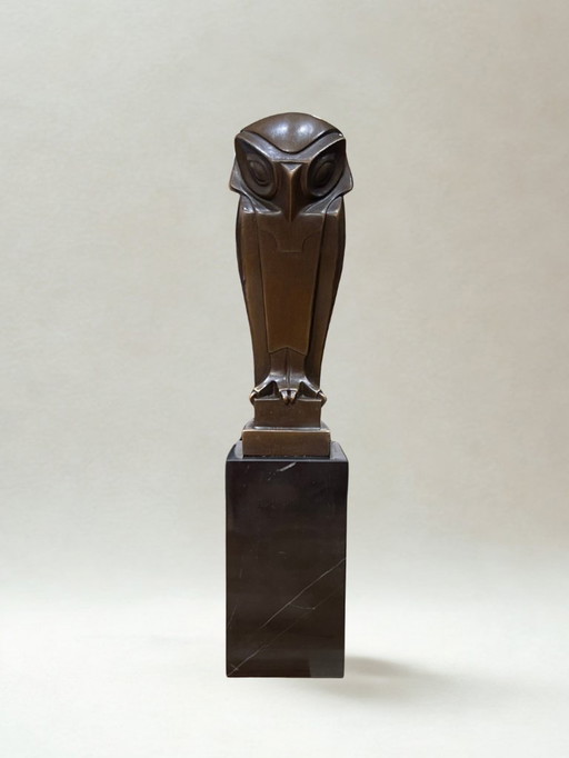 Bronzen sculptuur gesigneerd Coenrad – Gestileerde uil – Marmeren sokkel – ParijsBronzen sculptuur gesigneerd Coenrad – Gestileerde uil – Marmeren sokkel – Parijs