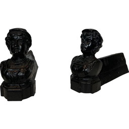 Paar oude gietijzeren vuurijzers met de afbeelding van een vrouw en gemerkt "Italian", Frankrijk 1950