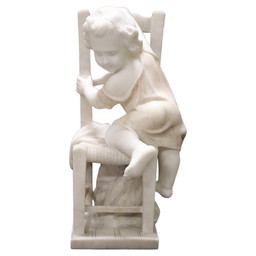 Child Gets off Chair, 19th Century Italian Marble Sculpture, SignedChild Gets off Chair, 19th Century Italian Marble Sculpture, Signed