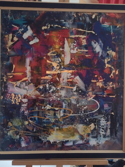 Frances Eckhardt - kleurrijk abstract schilderij 60x80 ingelijst