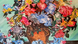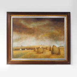 Groot olieverfschilderij van de Belgische kunstenaar Piet Van Den Buys, jaren 1950