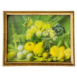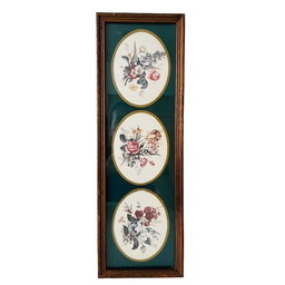 Vintage schilderij "borduurwerk op leren handschoenen" ovale lijst in verguld hout door Sophie Lecha