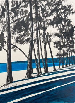 Aquarel getekend cipressen- en dennenbos in de Provence
