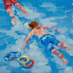 Dag aan zee, Jongen, Hedendaags impressionisme in miniatuur, 10x10 cm; Sandra KolondamDag aan zee, Jongen, Hedendaags impressionisme in miniatuur, 10x10 cm; Sandra Kolondam