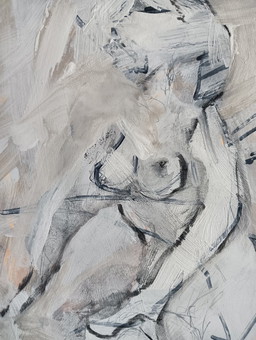 Oost-Indische inkt op grijs papier. Formaat 30x21 cm.
