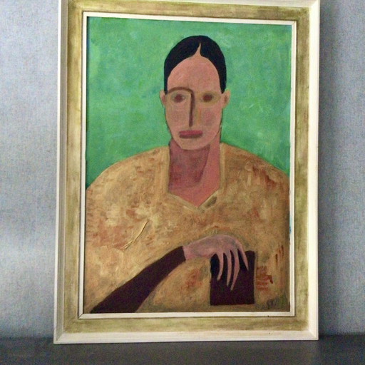 Art Deco groot schilderij Portret van een vrouw Gouache 68x52 cm Gesigneerd C Janse