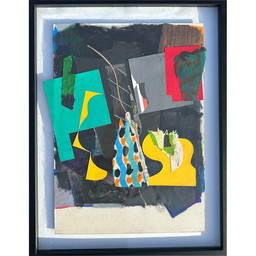 Vintage schilderij met combinatie van decoupage en collage, 1960