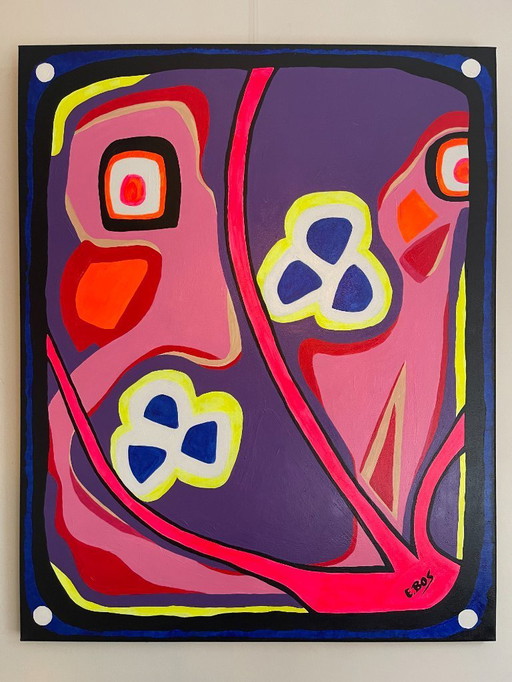 Frances Eckhardt - figuratief schilderij handgeschilderd moderne kunst 90x90 cm