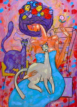 Lena László, acryl op doek, 'Precies 299 driehoeken'.