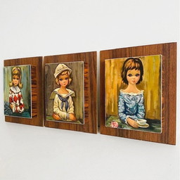 Set retro schilderijtjes Eden groot oog meisje 1960'sSet retro schilderijtjes Eden groot oog meisje 1960's