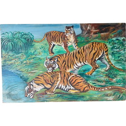 Vintage schilderij met 3 tijgersVintage schilderij met 3 tijgers