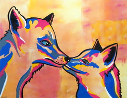 De snuffelende vossen (handgeschilderd)De snuffelende vossen (handgeschilderd)