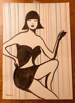 Inkttekening getekend voor een modeprint uit de jaren 70Inkttekening getekend voor een modeprint uit de jaren 70
